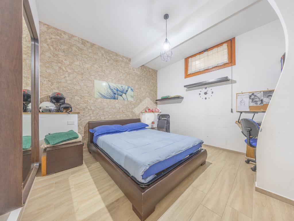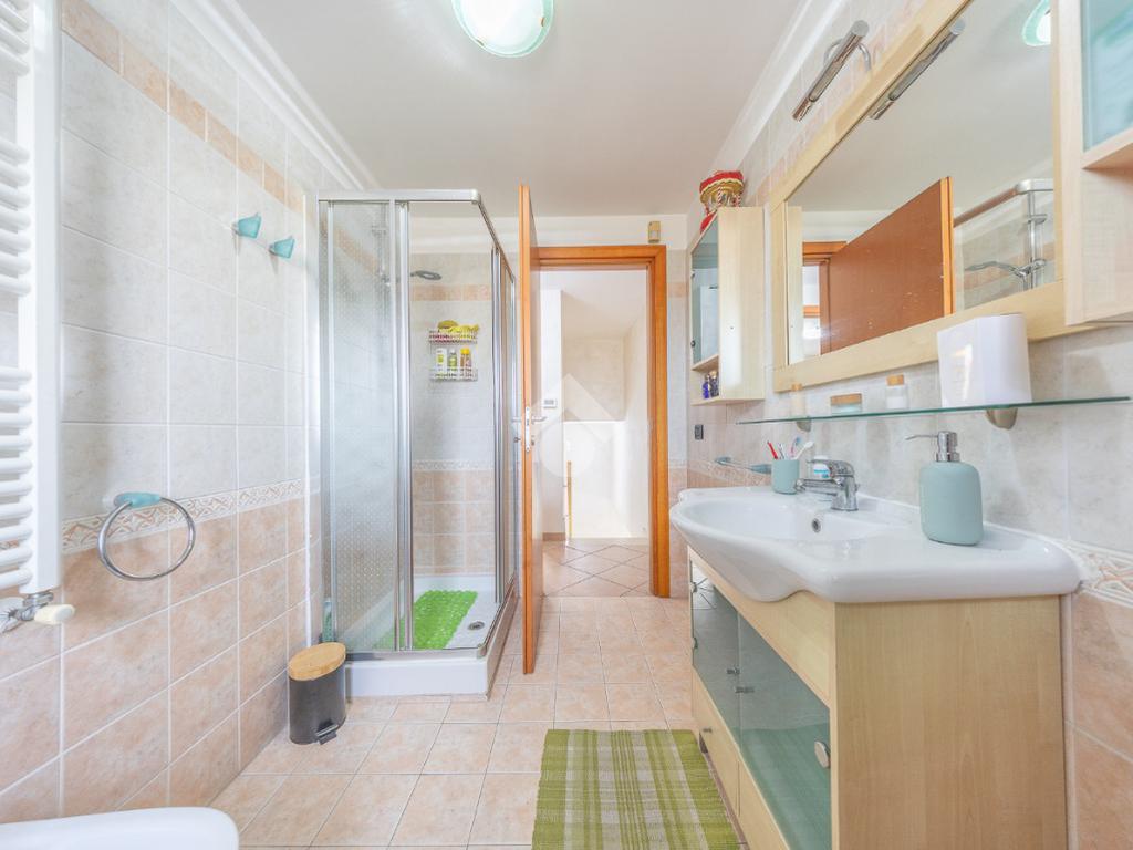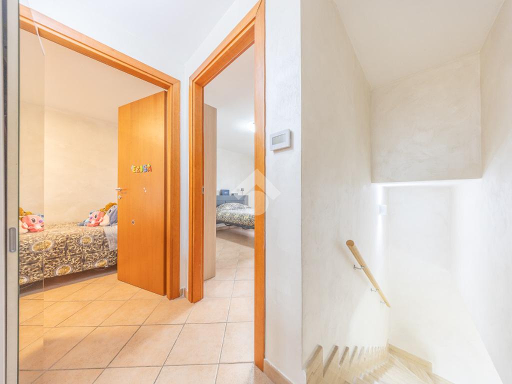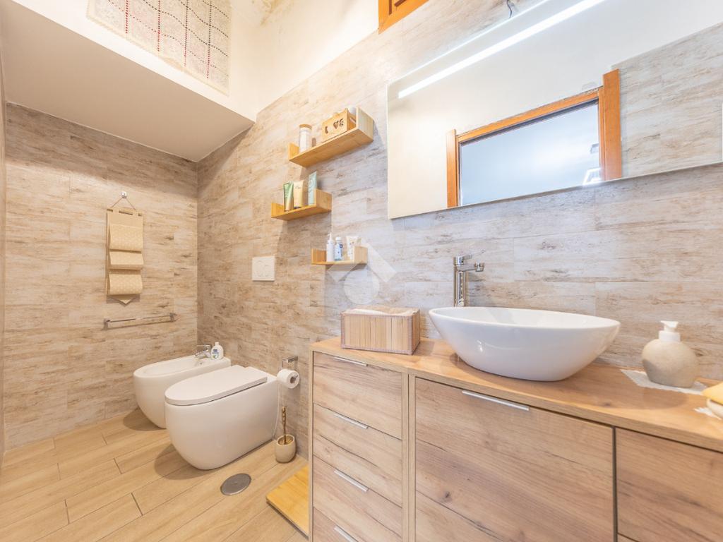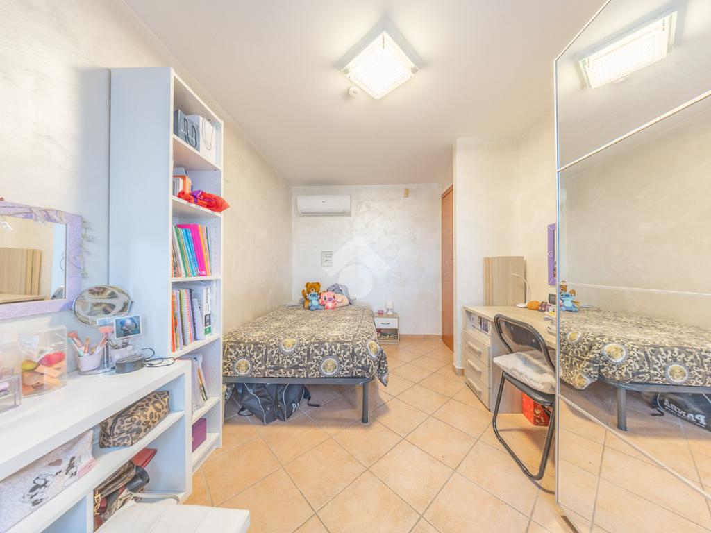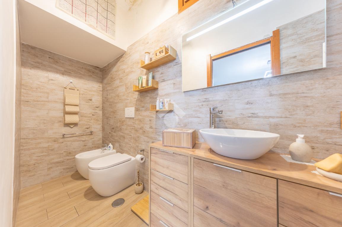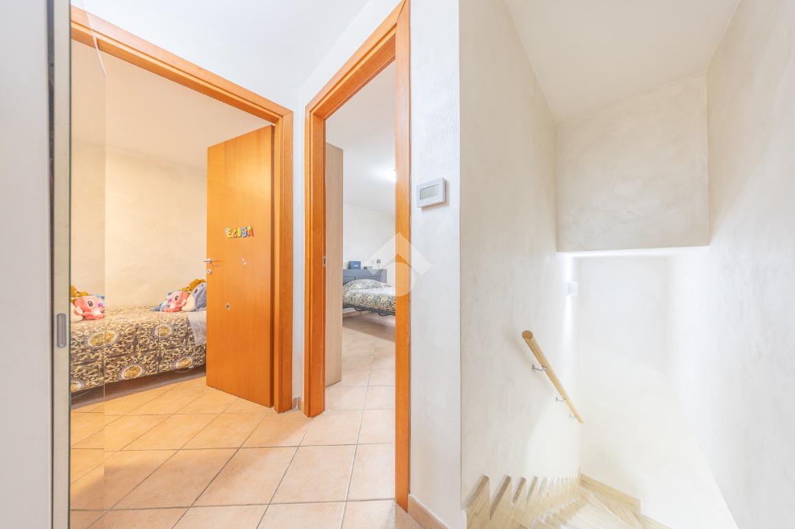 Il piano superiore ospita la zona notte più riservata, con due ulteriori camere luminose e un bagno, ambienti intimi e armoniosi, ideali per la vita familiare.