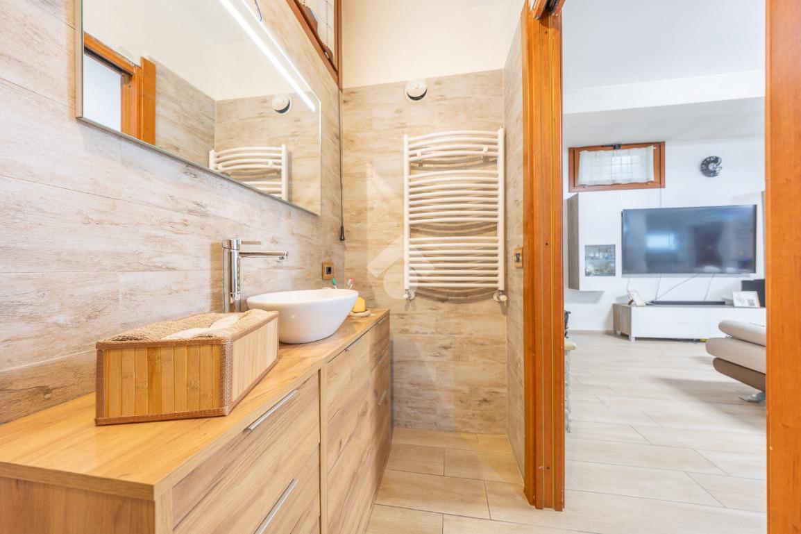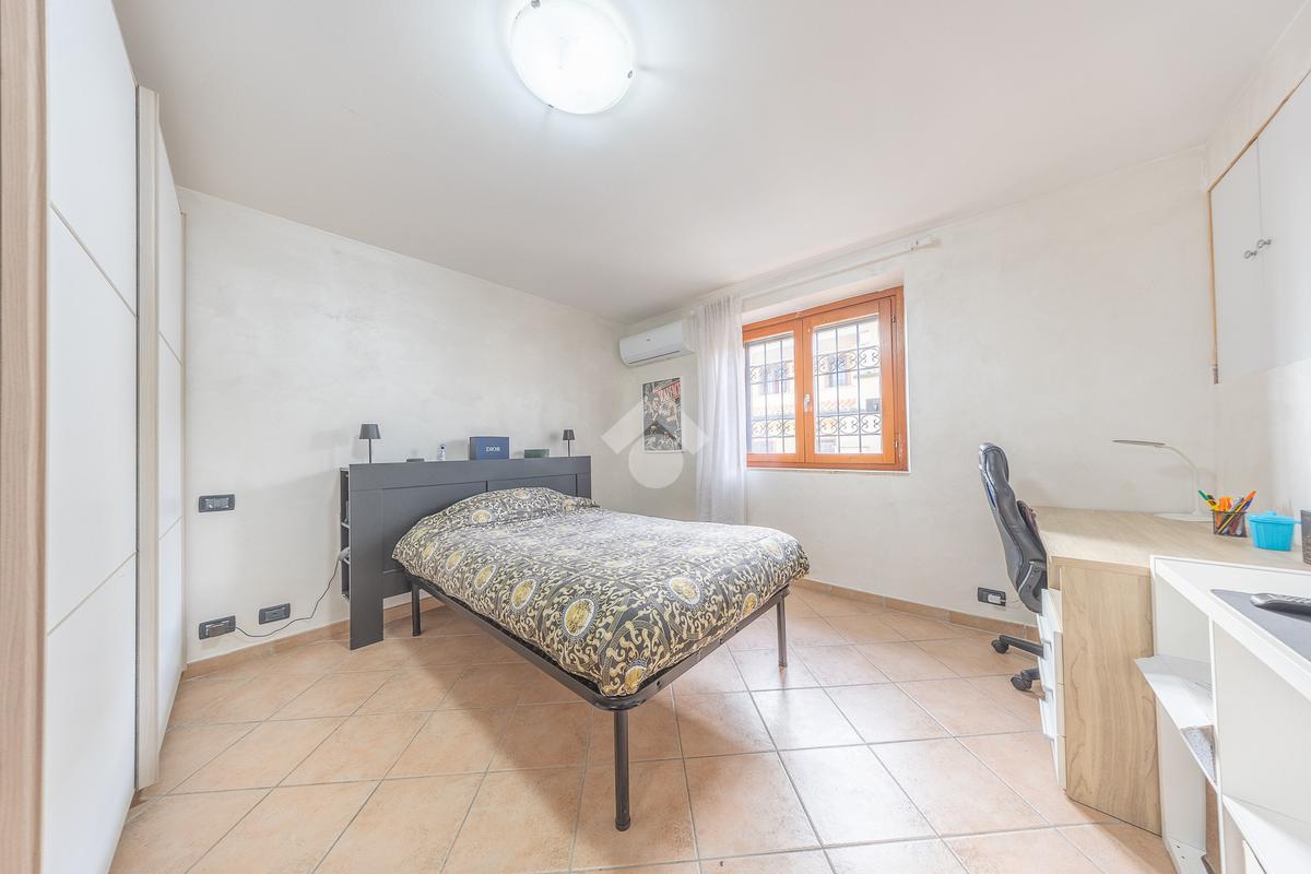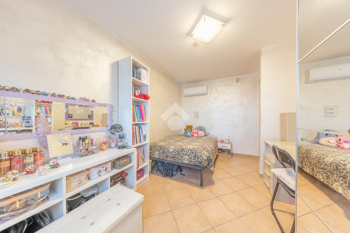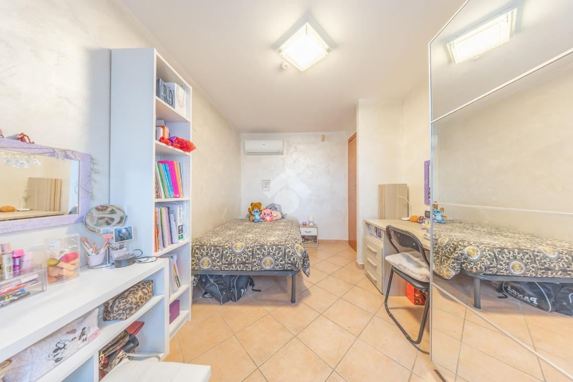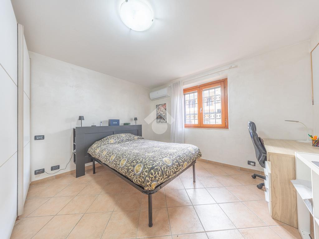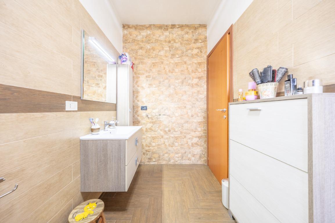 Il piano superiore ospita la zona notte più riservata, con due ulteriori camere luminose e un bagno, ambienti intimi e armoniosi, ideali per la vita familiare.