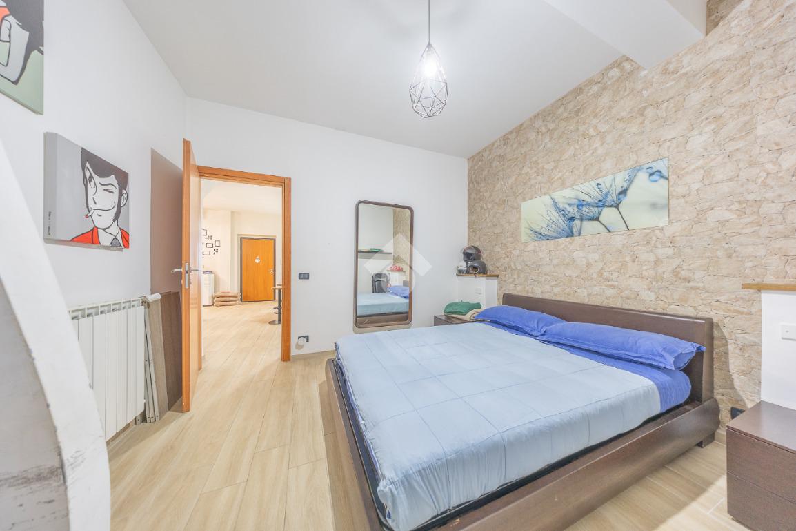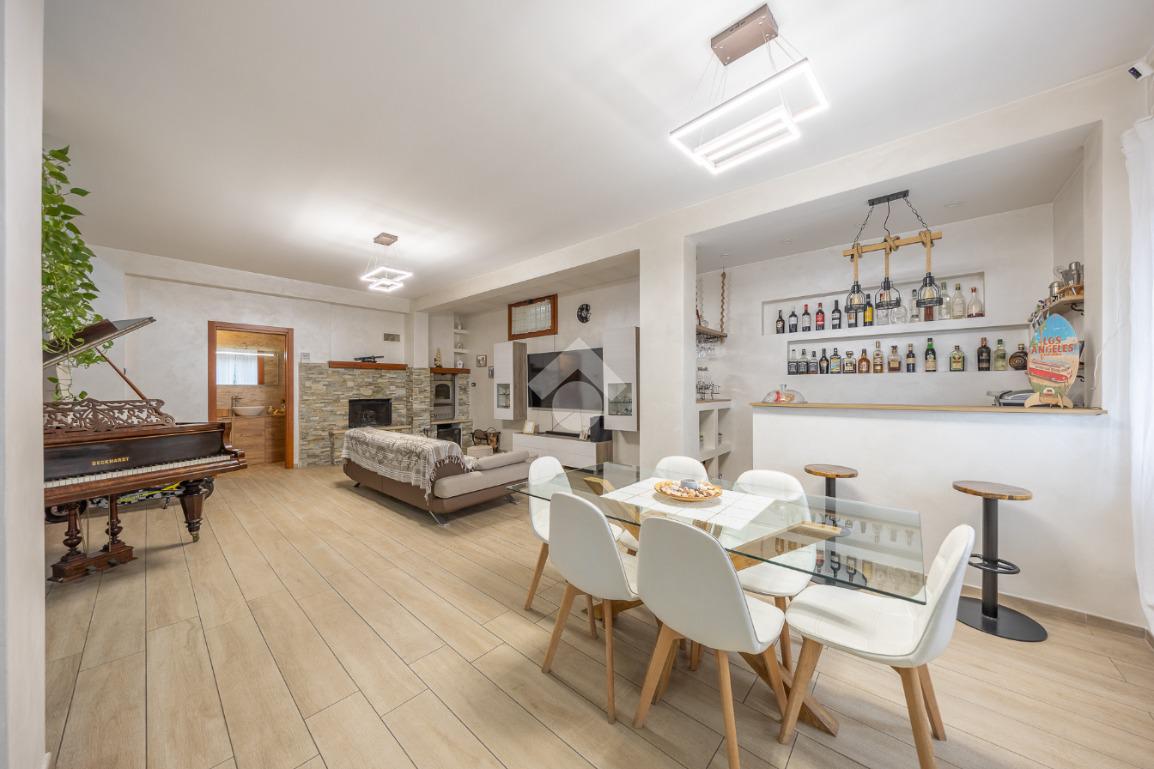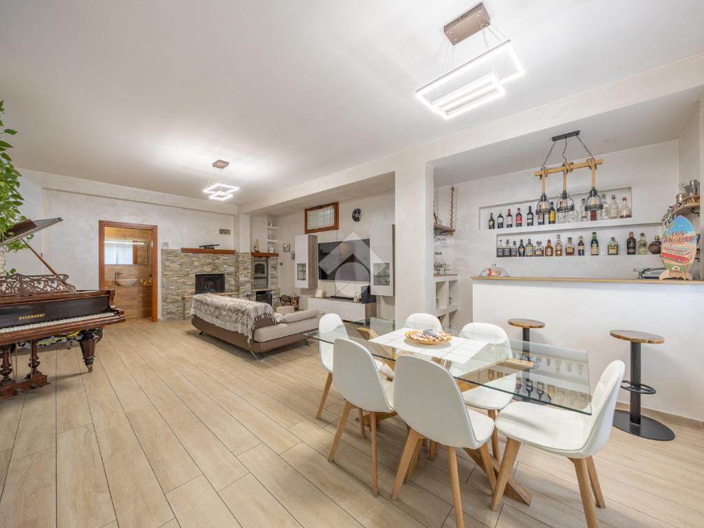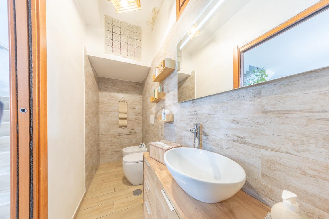 L’ingresso introduce a un piano S1 parzialmente fuori terra, sorprendentemente luminoso e finemente ristrutturato: un ampio salone doppio accoglie con la sua atmosfera calda e conviviale, impreziosito da una moderna penisola con angolo bar, perfetta per momenti di condivisione. Completano il livello un bagno raffinato e una prima camera, ideale come suite per gli ospiti o spazio polifunzionale.